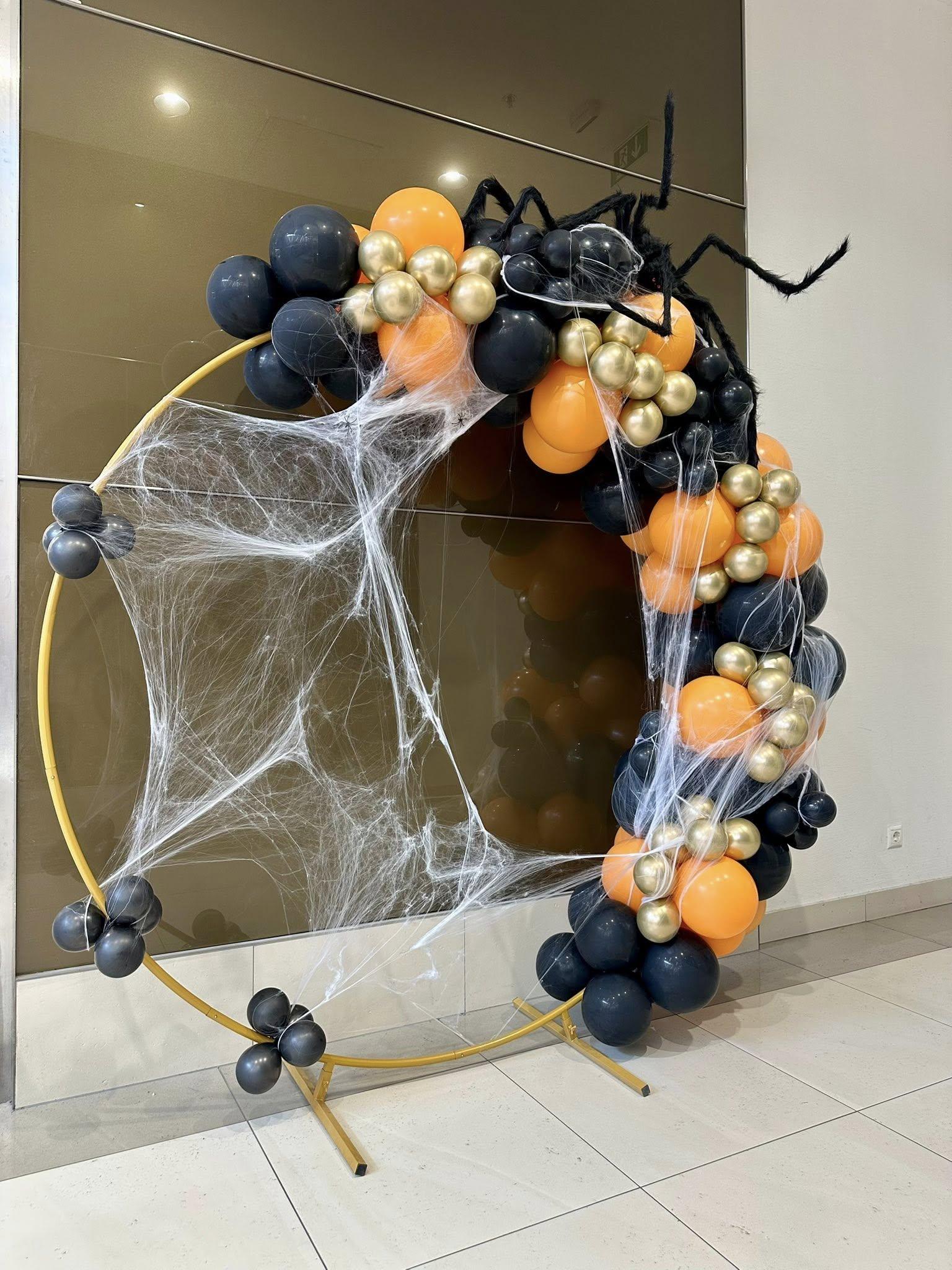 A Family Market születésnapi rendezvényére készült lufi kapu látványos és ünnepi bejáratként szolgált, amely az esemény hangulatát azonnal feldobta. A kapu piros és fehér színkombinációban készült, harmonikus és figyelemfelkeltő megjelenést biztosítva, így tökéletesen illeszkedett a születésnapi dekoráció témájához. A lufi kapu kialakítása stabil és biztonságos, héliummal és levegővel töltött latex lufik kombinációjával készült, változó méretekben, hogy dinamikus, látványos struktúrát alkosson. A kapu központi eleme vizuálisan keretezte a bejáratot, kiemelve az ünnep helyszínét, és vonzotta a látogatók figyelmét a rendezvényre érkezéskor. A piros-fehér lufik összhangja játékos és ünnepi, ugyanakkor elegáns, így a dekoráció minden korosztály számára vonzó látványt nyújtott. A lufi kapu nemcsak dekorációs elemként funkcionált, hanem fotóháttérként is tökéletes volt, biztosítva, hogy a vendégek emlékezetes képeket készíthessenek a születésnapi eseményről. Ez a látványos, tematikusan kialakított lufi kapu kiemelte a rendezvény különlegességét, és hozzájárult ahhoz, hogy a Family Market születésnapi ünneplése igazán emlékezetes és ünnepi legyen minden résztvevő számára.Halloweeni party lufikapu